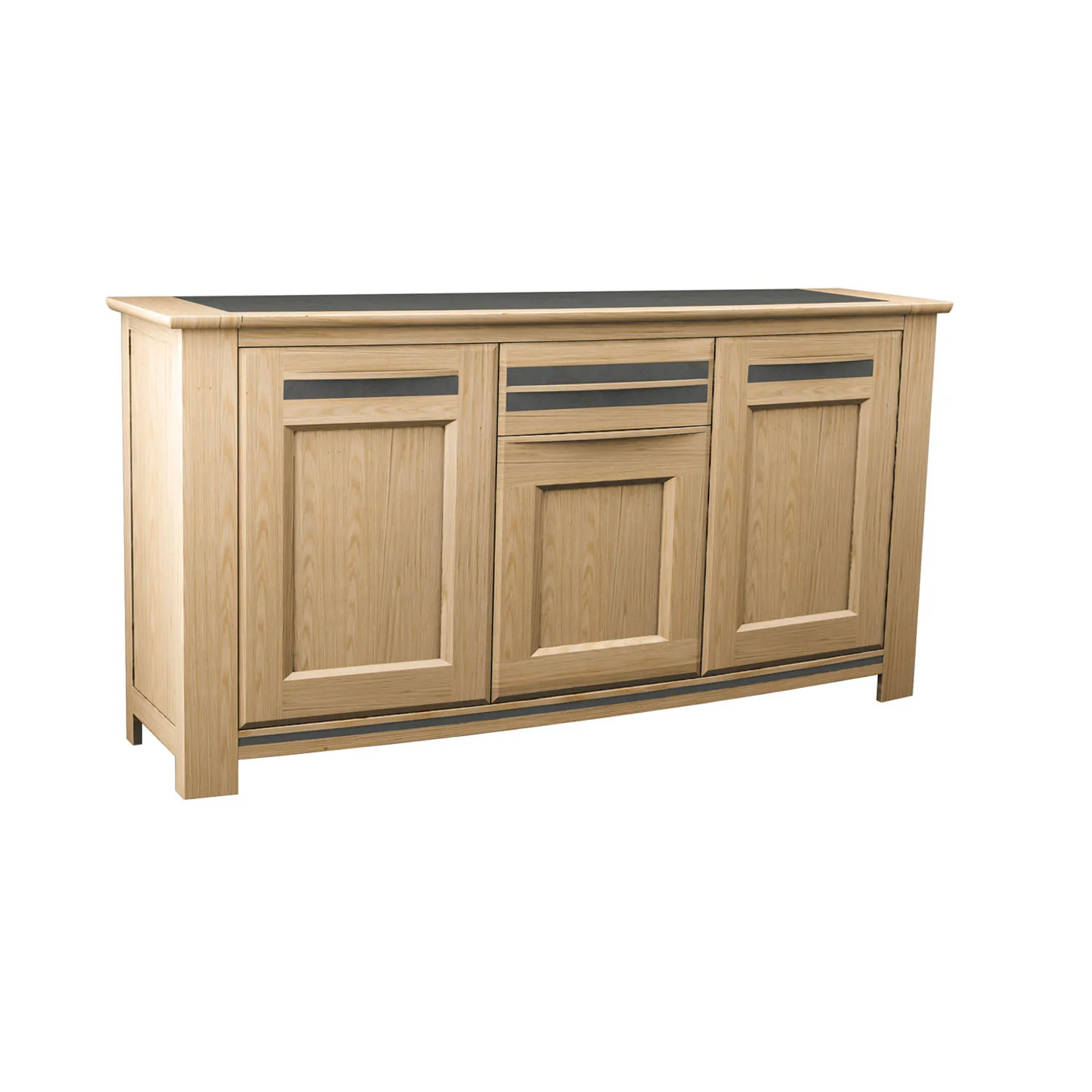 Côtés : Encadrement chêne massif avec intérieur en panneau de particules revêtus de placage chêne.