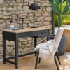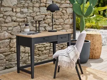 ODYSSE côté disign a fait le choix d’un plateau en marqueterie pour mettre en valeur la bauté du chêne, auquel est associé un pied tout en chêne, dans un style atelier.